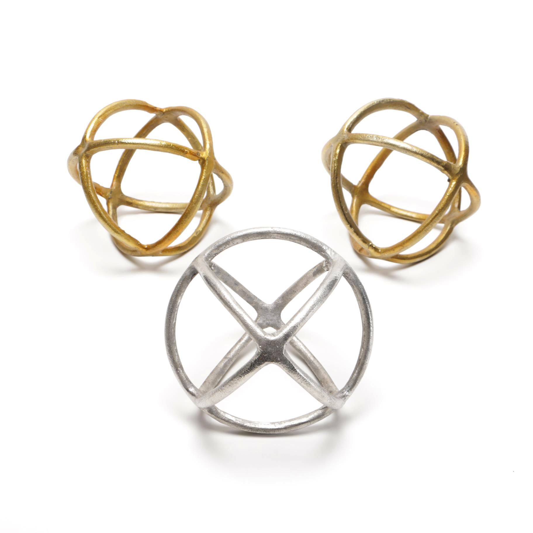 3 Piece Metallic Grey Folding Spheres Decorative Metal Band Orb Set